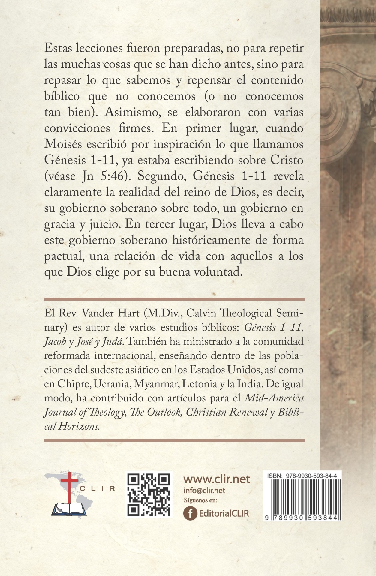 Estas lecciones fueron preparadas, no para repetir las muchas cosas que se han dicho antes, sino para repasar lo que sabemos y repensar el contenido bíblico que no conocemos (o no conocemos tan bien). Asimismo, se elaboraron con varias convicciones firmes. En primer lugar, cuando Moisés escribió por inspiración lo que llamamos Génesis 1-11, ya estaba escribiendo sobre Cristo (véase Jn 5:46). Segundo, Génesis 1-11 revela claramente la realidad del reino de Dios, es decir, su gobierno soberano sobre todo, un gobierno en gracia y juicio. En tercer lugar, Dios lleva a cabo este gobierno soberano históricamente de forma pactual, una relación de vida con aquellos a los que Dios elige por su buena voluntad.